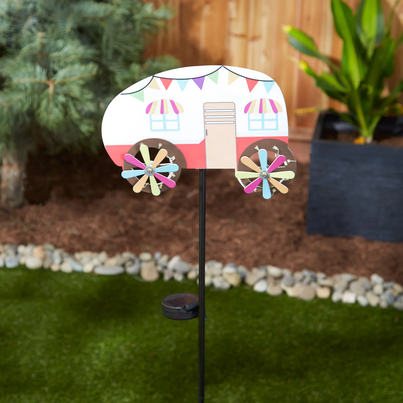 • A sweet addition to your front or backyard garden, this garden décor will make your outdoor space feel instantly more inviting. Place near a pond, fountain, flower or vegetable garden and the solar light will provide a soft glow at night.